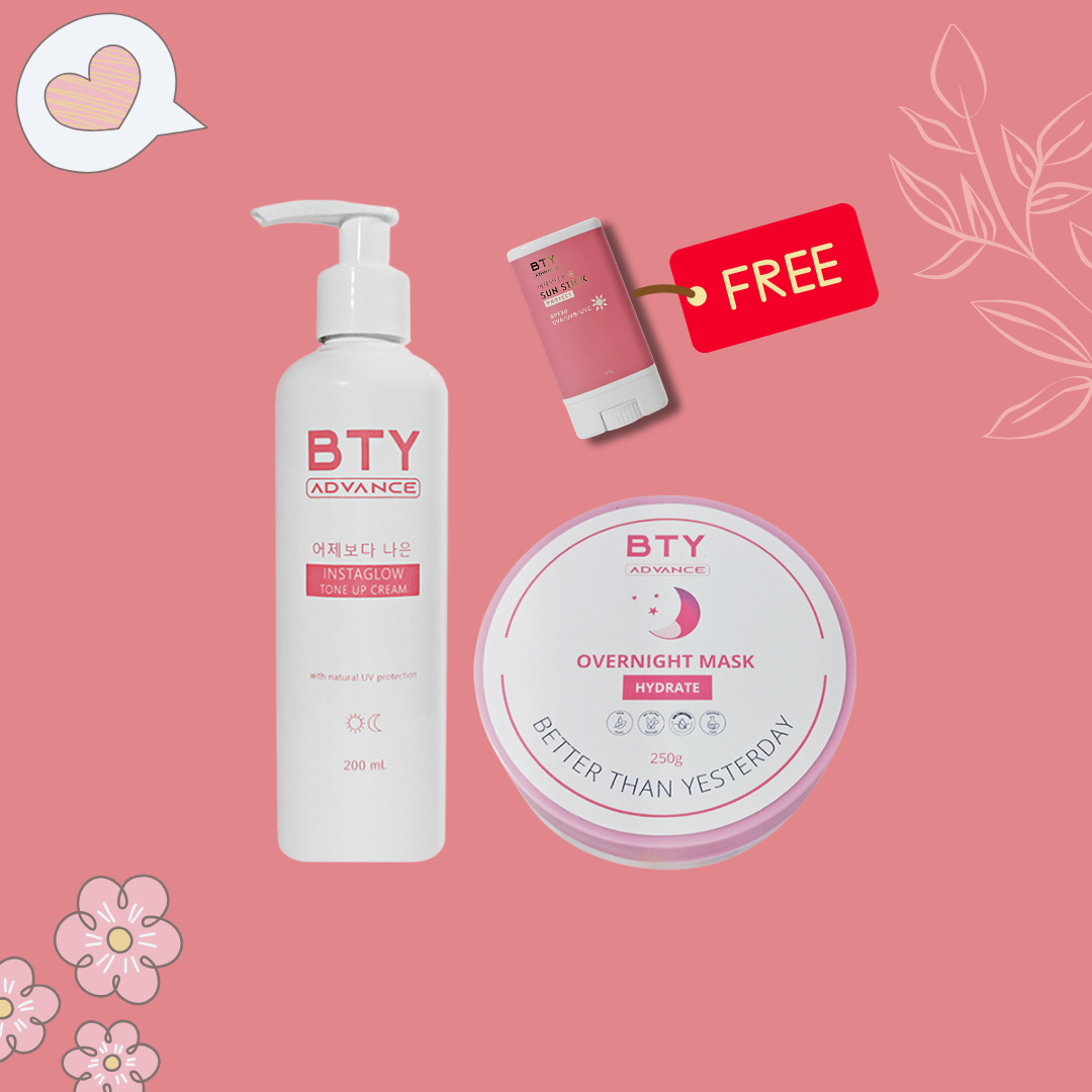 Transform your skincare routine into a luxurious self-care ritual with the BTY Advance Selfcare Trio Set, a curated collection designed to brighten, repair, and protect your skin for a flawless glow. This set features three standout products:
